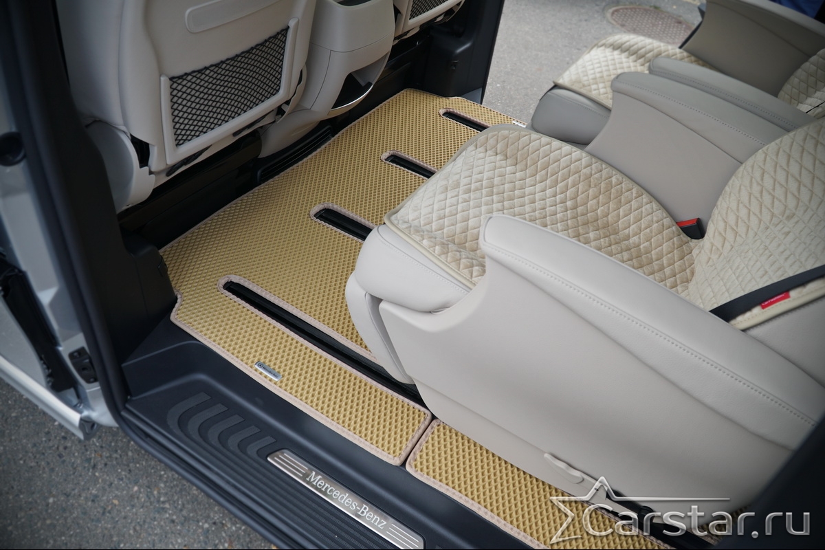 Текстильные автомобильные коврики Mercedez-Benz V-klasse II W447 (лимузин) (2014->) – это классический аксессуар, который обеспечит салону автомобиля неизменную чистоту, порядок и уют. Компания Carstar предлагает изделия из качественного ковролина в сочетании с полипропиленовым основанием на шипах, такая комбинация делает их прочными и водонепроницаемыми.