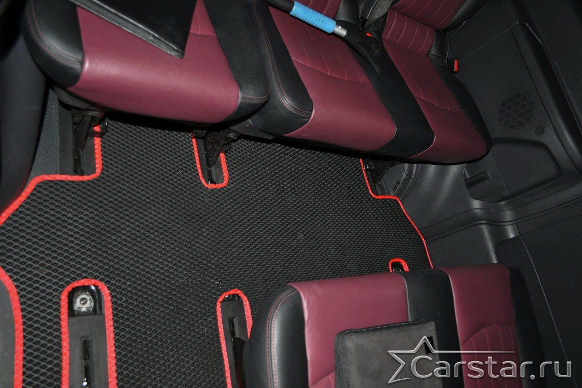 Текстильные коврики надёжно крепятся с помощью оригинальных систем фиксации. Обратная сторона имеет противоскользящее покрытие, что обеспечивает защиту от смещений и безопасность. Максимальное удобство достигается точными лекалами.