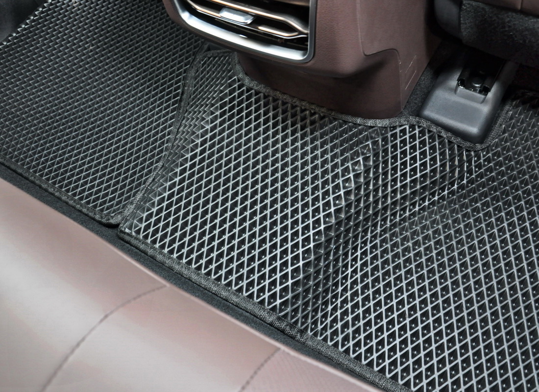 Текстильные коврики надёжно крепятся с помощью оригинальных систем фиксации. Обратная сторона имеет противоскользящее покрытие, что обеспечивает защиту от смещений и безопасность. Максимальное удобство достигается точными лекалами.